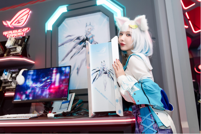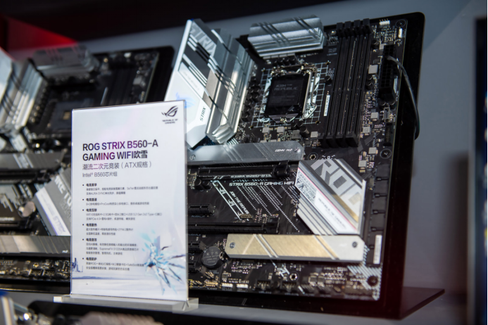 参与展出的ROG STRIX猛禽系列主板同样精彩,包括了ROG STRIX Z590-A GAMING WIFI、ROG STRIX B560-A GAMING WIFI和ROG STRIX B550-A GAMING,此三款吹雪家族主板同时亮相于二次元区的雪武战姬主题定制全家桶旁边。这些主板不仅拥有颜值爆表的银白战甲,且均配备高效整合式供电设计和全面的散热解决方案,带来极佳的游戏性能,新Sen7en雪武战姬形态与你一起战斗,吹雪家族主板是二次元爱好者和潮流游戏玩家的必备神器!