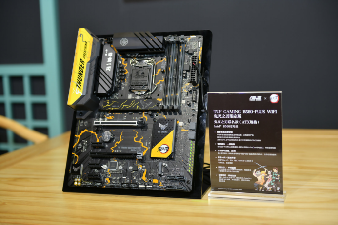 作为当下热门二次元IP,华硕携手鬼灭之刃推出的联名主机成为ROG信仰星球的热门打卡地。其中,作为整套主机的核心装备,TUF GAMING B560-PLUS WIFI主板鬼灭之刃限定版以我妻善逸为设计原型,融入了大量人物标志性明黄配色和衣服上三角形装饰,整体PCB正面以闪电的设计元素为主,呈现霹雳一闪的绝招。M.2散热片上还有啾太郎的剪影,甚至PCB背面还利用漫画风的强调线条元素以突出雷之呼吸的强悍。颜值颇高,性能也不俗,采用了高规格供电设计和支持PCIe 4.0技术,而WiFi 6无线网卡加2.5G有线网卡也提供畅快游戏网络体验。另天赋听觉异能,凭借双向AI降噪和DTS游戏音效定制技术,智能降低噪音,实现沉浸式游戏音效体验,助你声辨善恶,让敌人无处躲藏,主宰战场!
