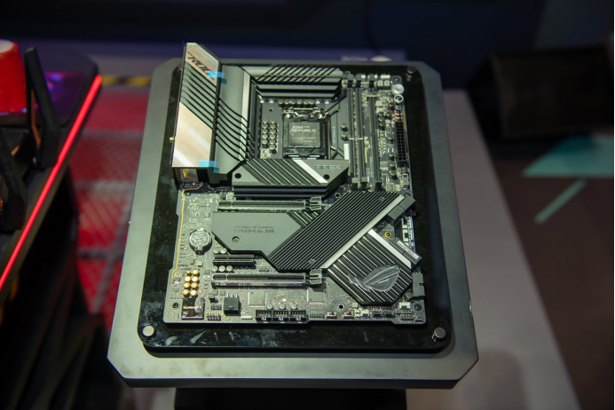 ROG信仰星球多个展台中展出了ROG MAXIMUS XIII系列和ROG CROSSHAIR VIII系列的三款热销产品,分别为ROG M13H主板(ROG MAXIMUS XIII HERO)、ROG M13A主板(ROG MAXIMUS XIII APEX)和ROG C8DH主板(ROG CROSSHAIR VIII DARK HERO)。