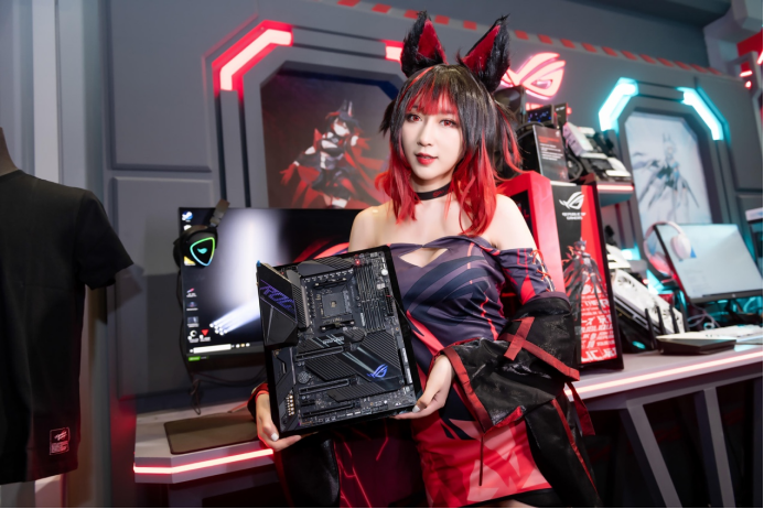 搭载于二次元区的黑色RO姬主题定制主机上的ROG C8DH同样拥有强悍配置,该主板专为AMD锐龙5000系列处理器打造,一经发布便创下锐龙9 5950X全核6075MHz的超频纪录,更荣获快科技、微型计算机、中关村在线等多家专业媒体授予的年度奖项荣誉。