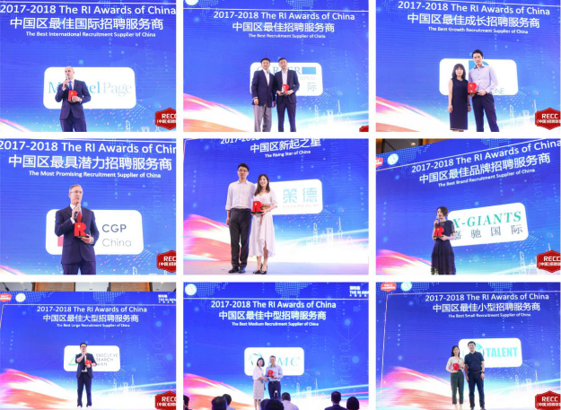 荣获“2017-2018年度The RI Awards of China 中国区最佳招聘服务商”的企业有: