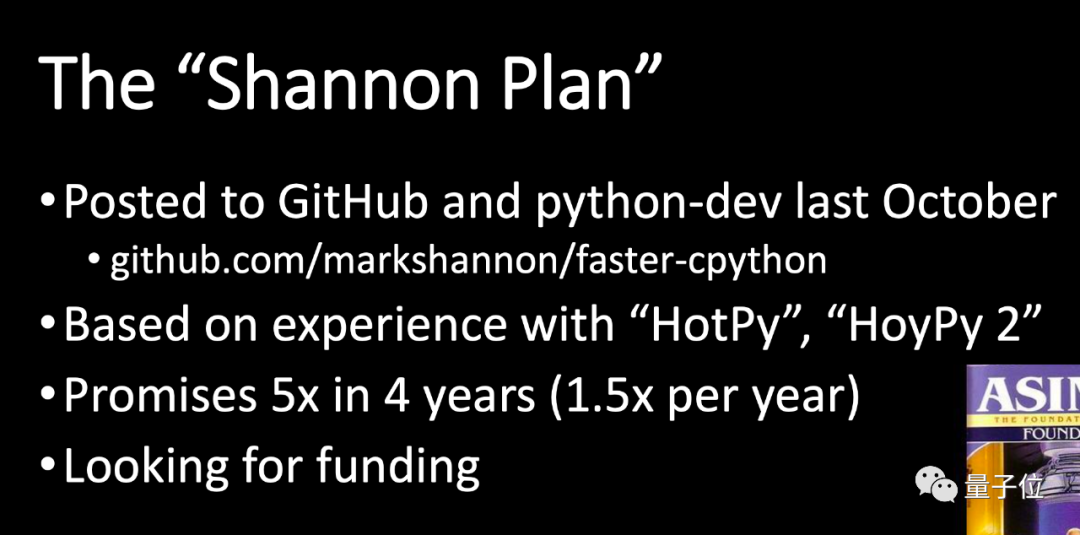 并且,Shannon之前参与的HotPy项目中所开发的解释器,比目前CPython解释器的纯Python代码快三倍。这证明了对CPython优化的可行性。
