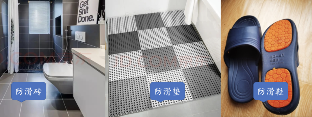 解决方法很多,比如最常见的防滑三件套:①防滑砖、②防滑垫、 ③防滑拖鞋