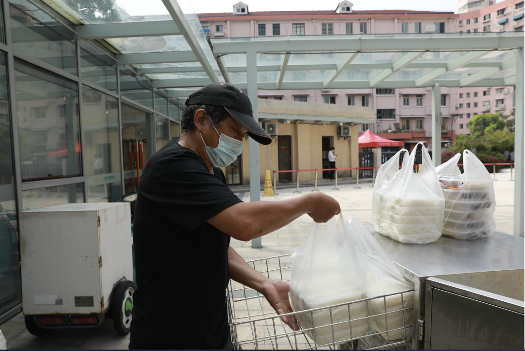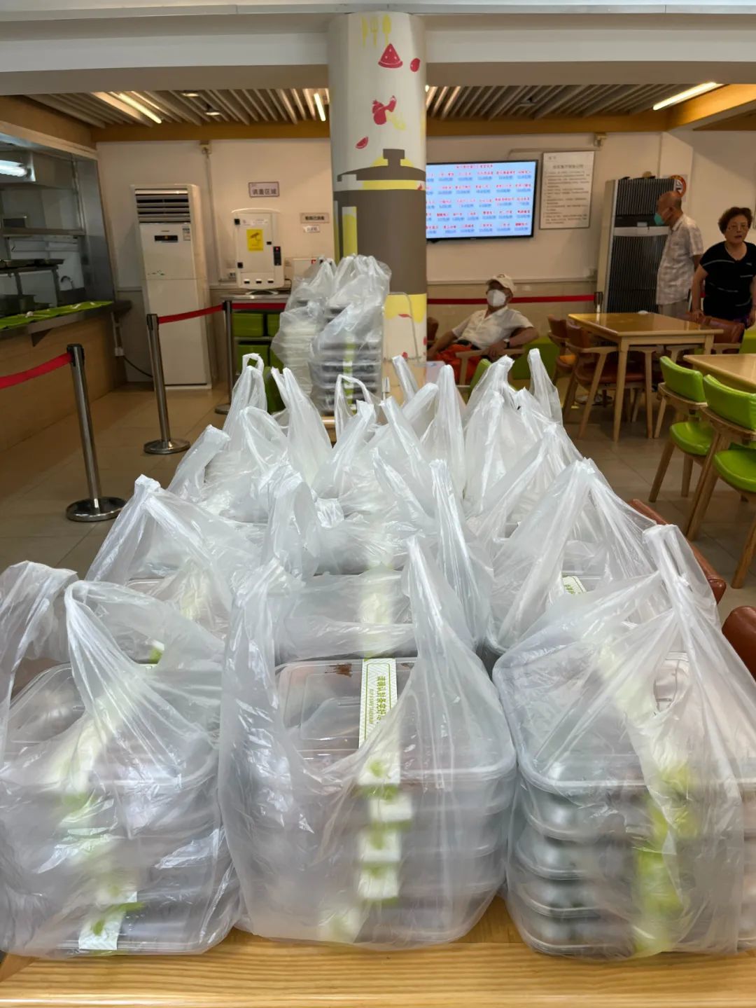 目前整个社区订餐的老人大概有400多个,在临近中午的时候,这几百份饭盒都会打包完毕,在12点前送到老人家里