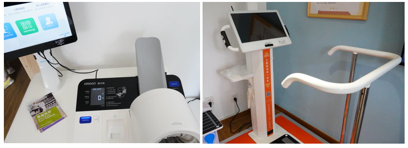 这里也有服务人员帮助老人做康复训练,小区的老人过来之后可以先测血压