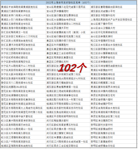 2022年被上海评为老年友好型社区就有102个,其中市区就占了41个