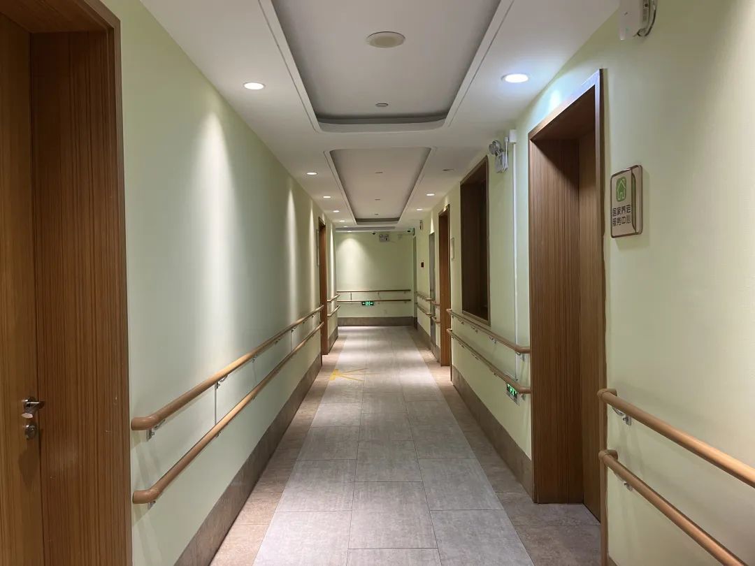 能看到走廊的两边都有这种高低两排扶手,方便老人走路时可以扶一下