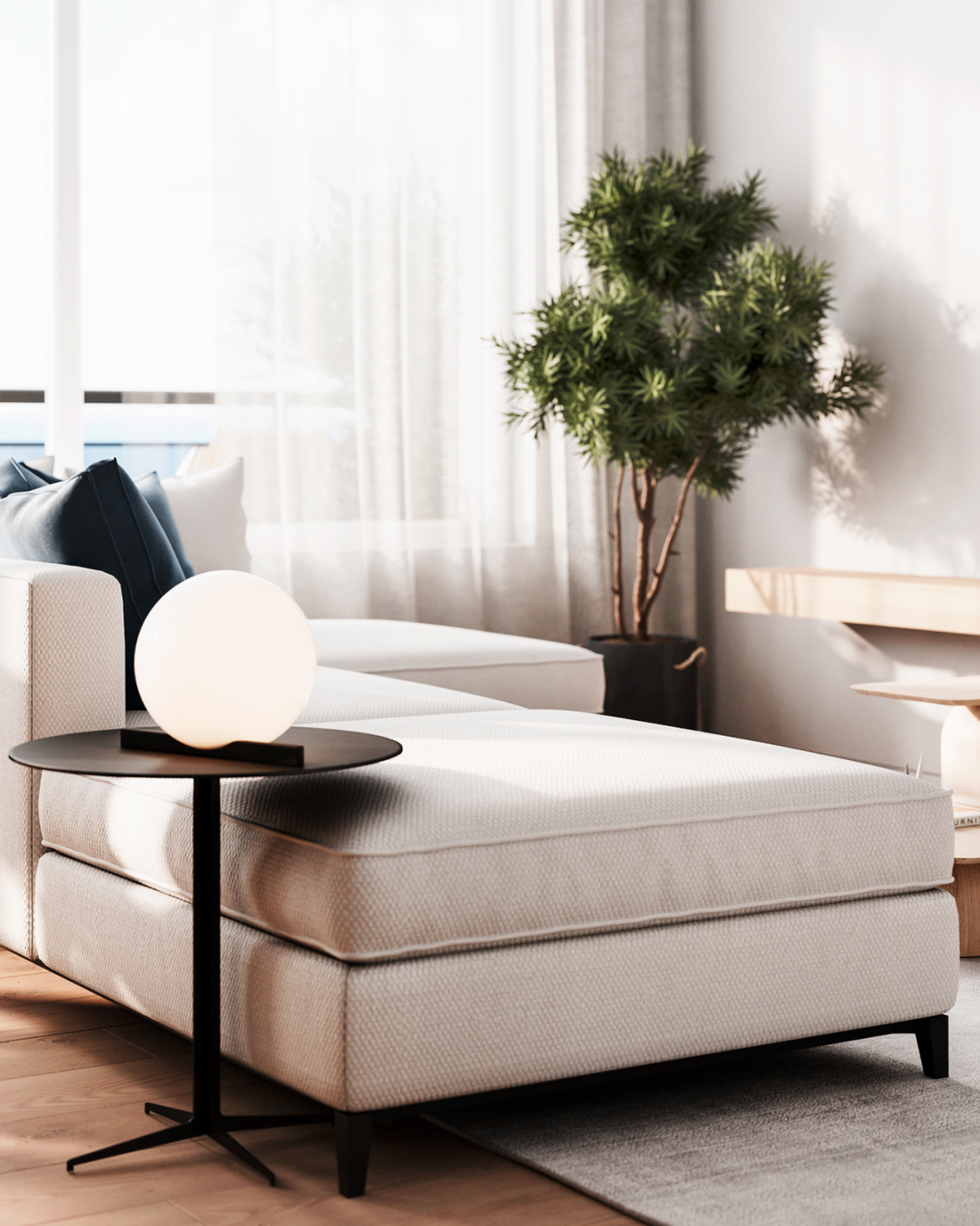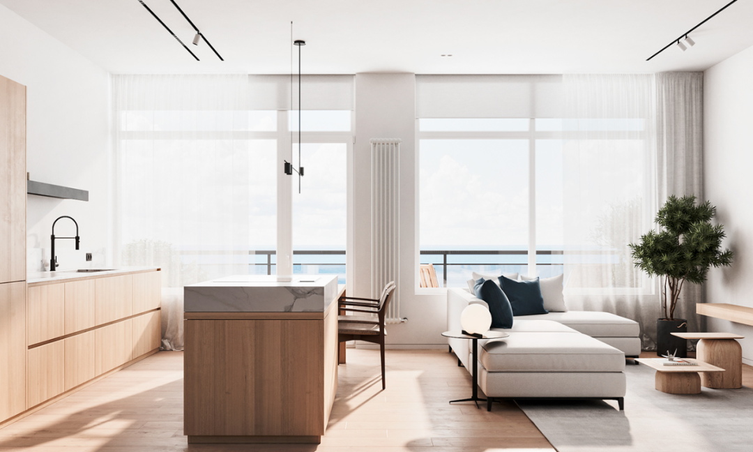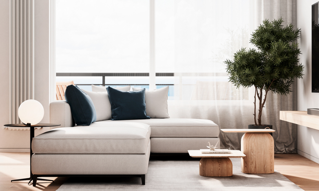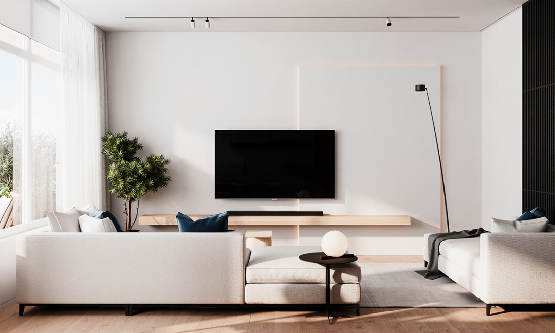 客厅主色调采用大面积的白色,地板则选用了浅色系的原木,让整体空间看起来舒心且柔和。