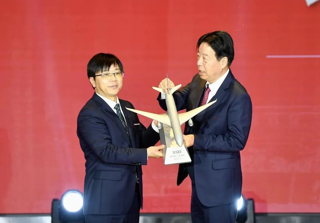 西子联合控股有限公司董事长王水福向学校捐赠飞机模型。