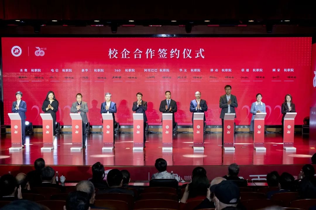 学校与阿里巴巴集团淘宝教育、360集团、新华三、电信、移动、联通等企业签署了新一轮的校企合作协议,将以共建基地项目化教学的模式共同培养更多更符合企业需求的数字经济产业技术人才。