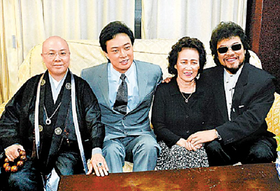 费玉清一家,右二为母亲,哥哥是台湾主持界大咖张菲(右一),姐姐费贞绫原是艳星,早已出家。