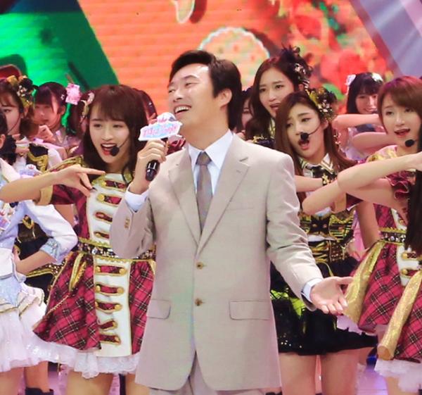 2015年11月15日,费玉清在巡回演唱会沈阳站上大讲荤段子,搞笑模仿蔡琴、周华健。 视觉中国 资料图