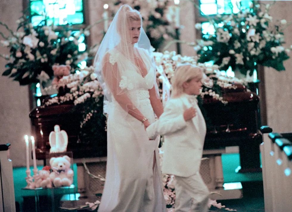 ▲ 马歇尔的葬礼中,安娜身穿婚纱亮相。