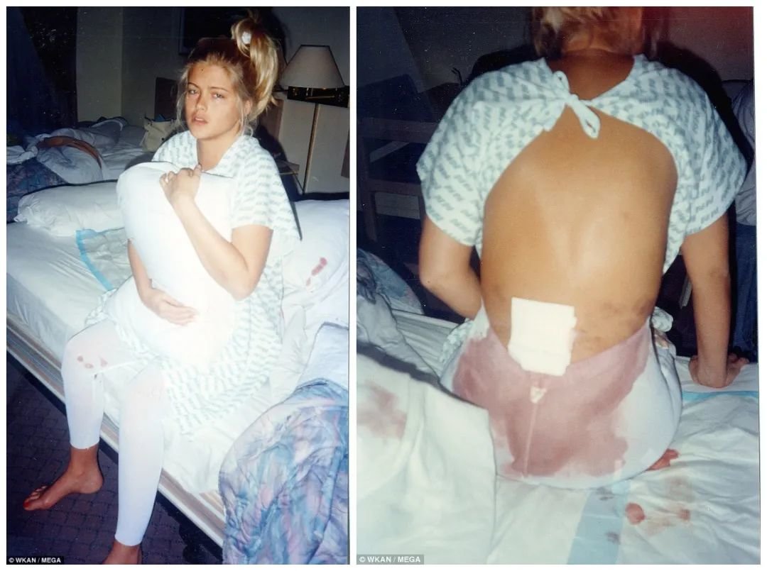 ▲ 自从年轻时开始做隆胸手术,在之后的很多年里,安娜还做了吸脂手术、丰唇手术,等等。这张照片是她年轻时做吸脂手术后的照片。