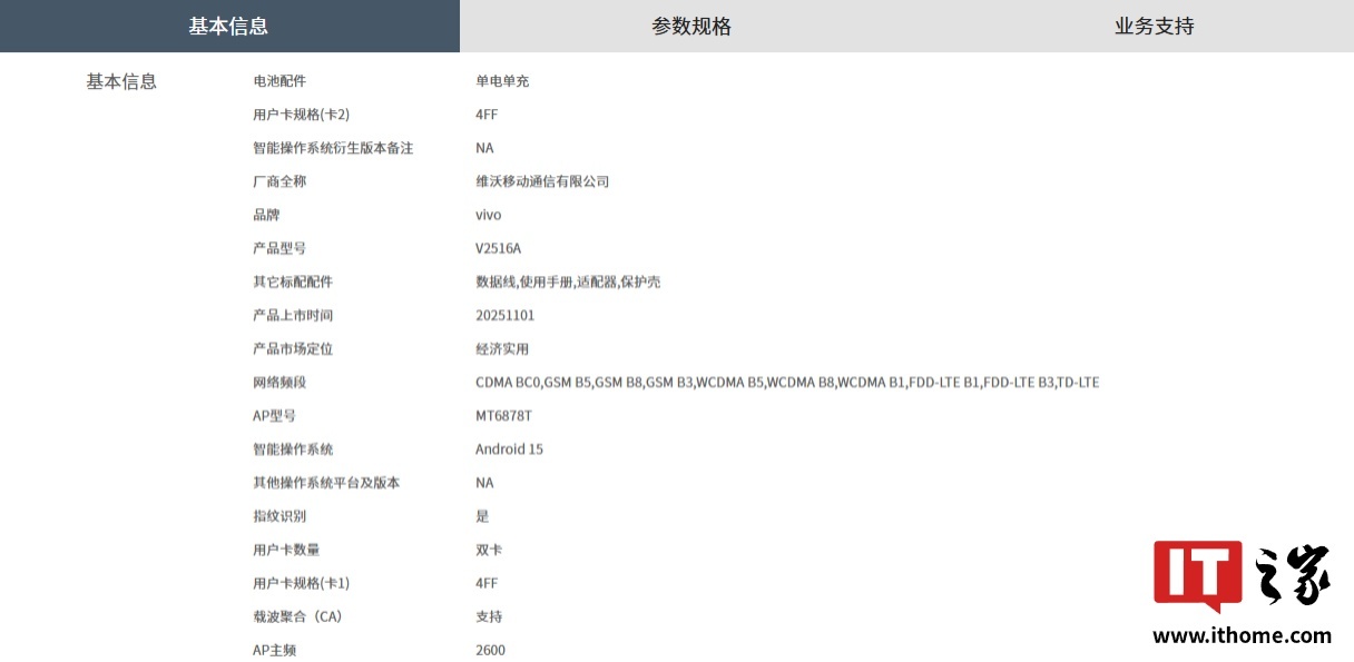 IT之家注意到,型号为“vivo V2516A”的 vivo Y500 Pro 手机已现身中国电信终端产品库。该机提供 12GB+256GB、12GB+512GB 两种存储规格,拥有浅绿、钛黑、柔粉、祥云金四种配色,产品零售价格尚未公布。