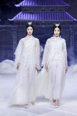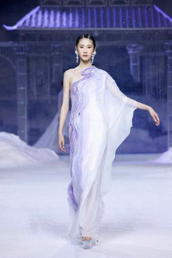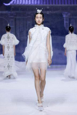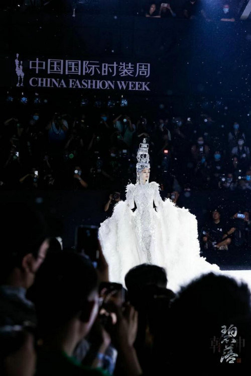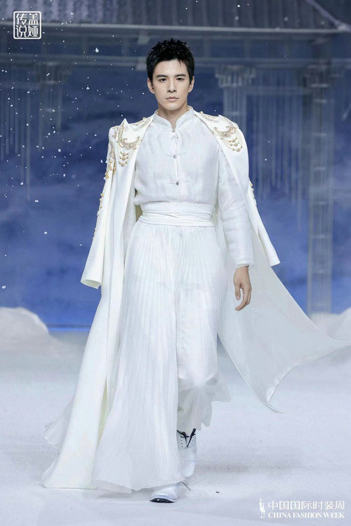 本次熊英·盖娅传说(HEAVEN GAIA)时尚大秀一如既往受到时尚行业专家、各界知名人士、多栖明星、品牌挚友,青年演员林柏叡身着熊英设计的最新款服饰,一身白色国风造型化身“天宫神龙”,惊艳秀场。