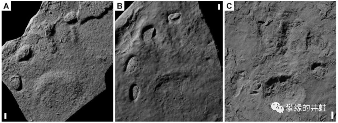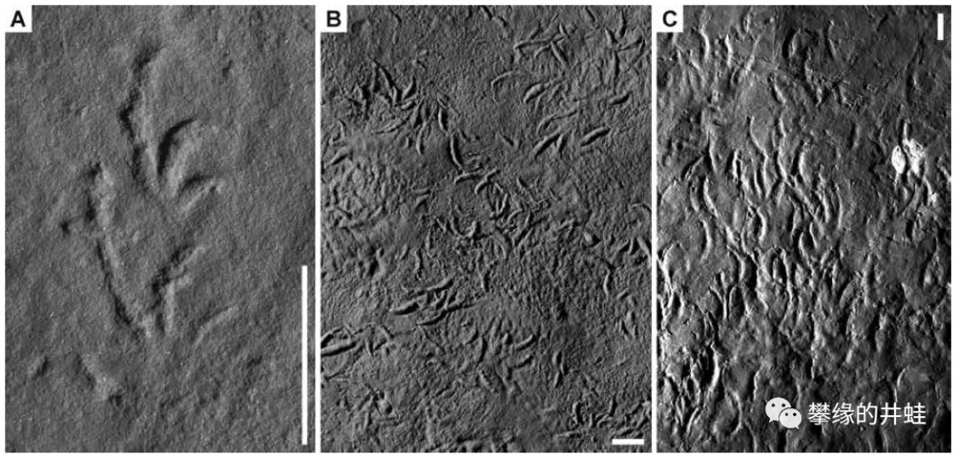 有些足迹化石明显是附肢抓挠出来的,可能来自某种节肢动物;有些像是双壳类用斧足顿出来的;有些像是腹足类,石鳖,扁形虫之类用肚子爬出来的。至于那些曲曲弯弯的洞穴,可能性就更多了:扭形动物,环节动物,螠虫动物,星虫动物,鳃曳动物,半索动物,等等,甚至不排除一些不为我们所知的已经灭绝的蠕虫形动物门类。