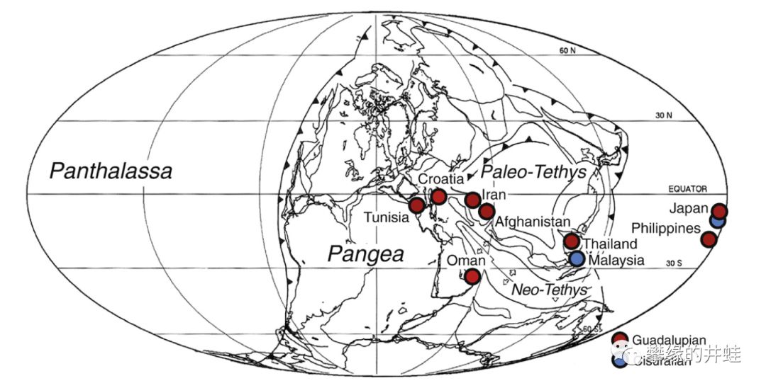翅蛤科化石分布很广(如上图所示),可见二叠纪海洋的富饶。这些巨大的双壳类在GLB灭绝,它们很可能是峨眉山大火成岩省的受害者。图片来源自[6]。