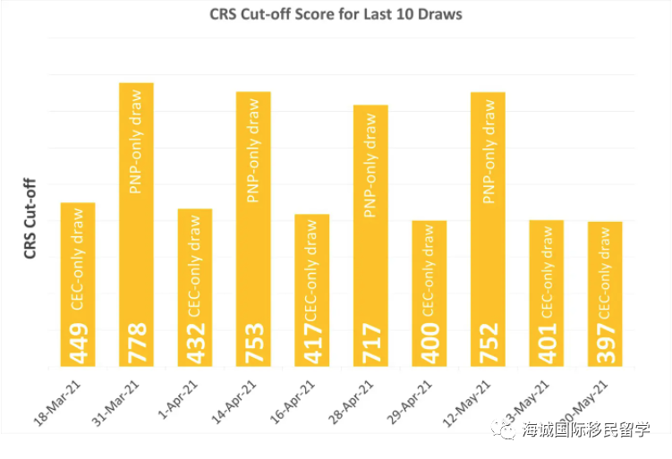 2021年5月20日,加拿大EE移民快速通道惊现非常规神奇一抽,第188次甄选,397分发出1842份邀请。本次甄选只是时隔一个星期, 是继上次CEC的401分4147人之后,再次只针对加拿大经验类移民CEC的甄选,分数下降到400分以下。看来移民局对留住留学生的信息是坚定不移的。联邦技术类移民,联邦技工类移民不在甄选行列。