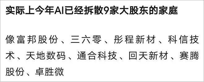 实际上在今年的AI浪潮中,据统计有9家上市公司的大股东离婚,其中就包括卓胜微。