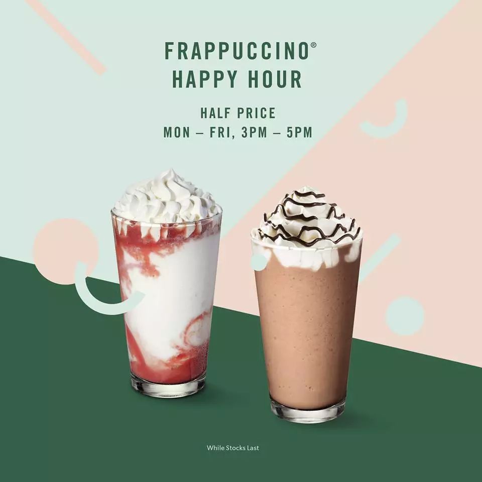 星巴克欢乐时光又来啦!截止到本周五(18号),每天下午3到5点期间,可以享受所有星冰乐frappuccino半价,新西兰各大门店都适用哦,下午工作困了来一杯提提升很不错啊!