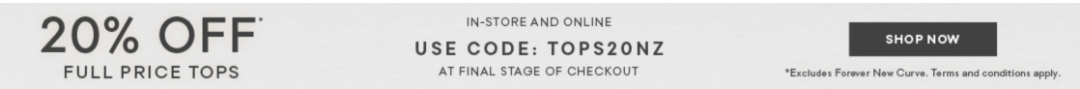 作为澳洲著名的小仙女牌子Forever New。最近推出夏季时装20%off的优惠,线上线下同步进行,在结算时记得输入折扣码:TOP$20NZ。她家的衣服不用多介绍,时尚和艺术结合的典范,无论是参加派对、出门旅行简直就是拍照必备了。
