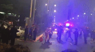 有人从废墟中爬出 穿着睡衣满脸血灰