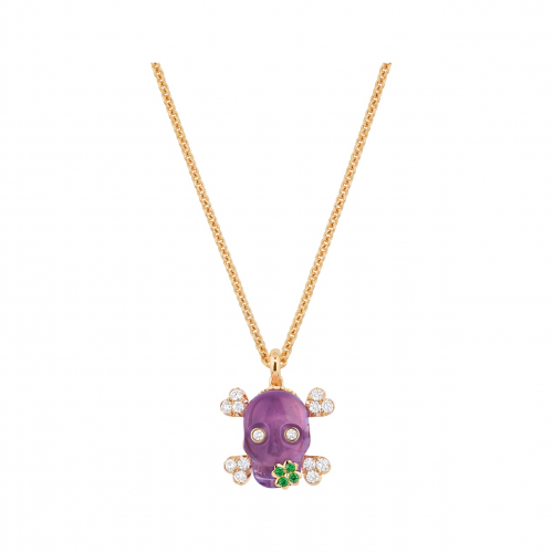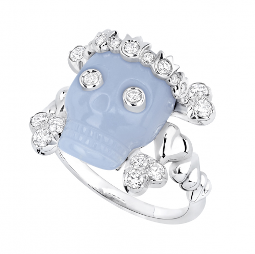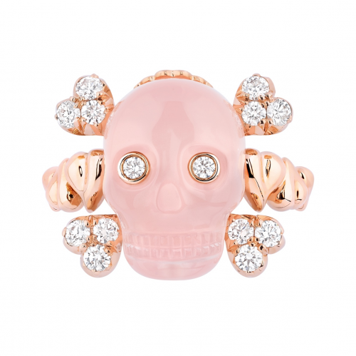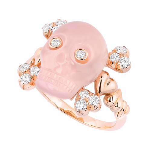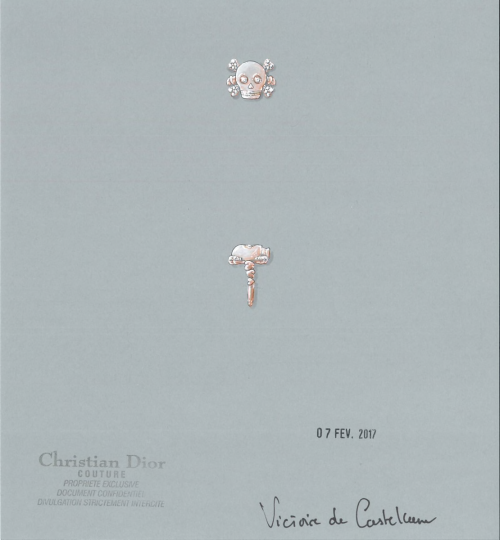 该主题早在二零零一年就出现在维多利娅倾情创作的“La Fiancée du Vampire”顶级珠宝系列中,之后于二零零九年华丽回归,为“Reines et Rois”顶级珠宝系列的二十件作品注入深刻内涵(十枚“皇后”戒指与十枚“国王”吊坠),彰显珠宝意蕴的隽永力量,与脆弱易逝的生命形成鲜明对比。二零一三年,维多利娅推出Tête de mort顶级珠宝系列,在延续该主题故事的同时,打破迪奥珠宝工作坊的工艺陈规,打造出璀璨闪耀、精雕细刻的珠宝新作。该系列催生了今年的六款Tête de mort高级珠宝系列作品,包括三款戒指和三款项链,名贵神秘,引人一探究竟。