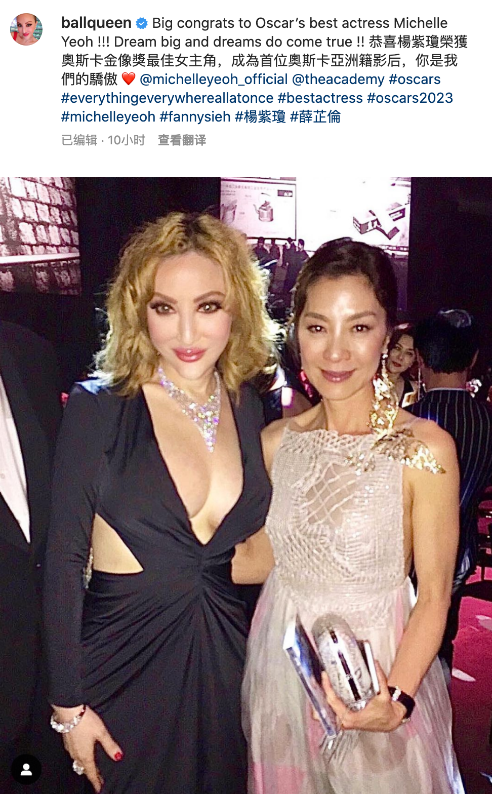 ▲得奖后,杨紫琼还晒出和男友的合影,手上的巨钻抢镜。