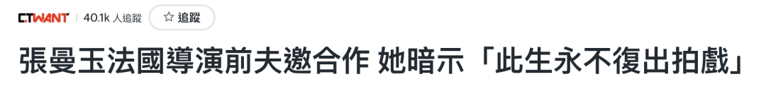 这让所有的影迷心下一沉,很多媒体用了这样的标题——张曼玉此生永不复出。