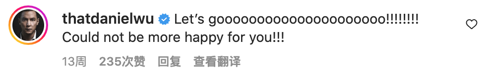 ▲吴彦祖堪称杨紫琼的小迷弟了,在IG上留言最多,还表示也为她投了票。