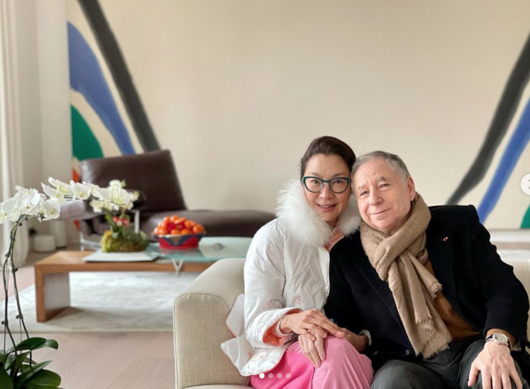▲等待领奖时的杨紫琼,身边坐着的是她的男友,国际汽联主席让·托德。
