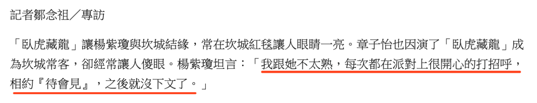 至于怎么评价章子怡,杨紫琼说“我永远是她的大姐姐”。