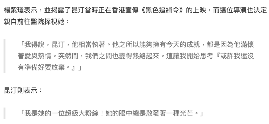 ▲昆汀是杨紫琼的粉丝,杨紫琼拍摄《阿金的故事》受伤,险些瘫痪,昆汀和李连杰还一起去医院看了她。