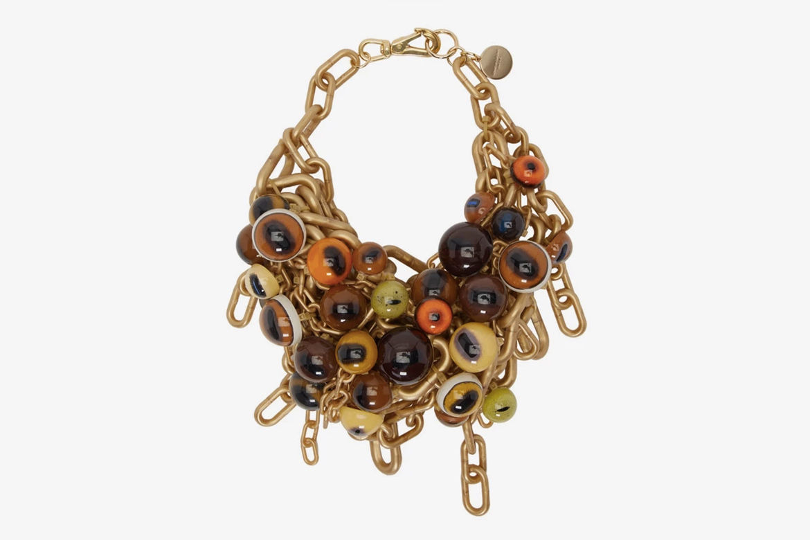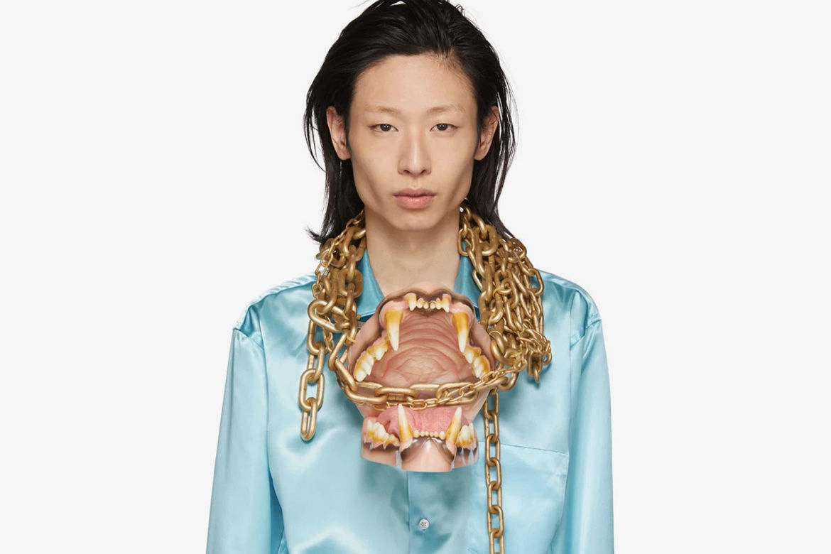 紧跟 2019 年秋冬系列,COMME des GARÇONS HOMME Plus 发布了品牌三款新项链。巨大的兽嘴,鲸鱼和一大把的眼球,搭配粗大的分层式金色锁链,COMME des GARÇONS HOMME Plus 这次的项链设计可谓是惊世骇俗,视觉效果相当震撼。这三款不按常规出牌的“波西米亚风情”项链,可以说是该品牌 “Anti-fashion”(反时尚)设计理念的代表之作了。系列项链现在 SSENSE 独家发售,售价为 $1,435 到 $3,160 美元。不知道大家对这一设计作何看法呢?
