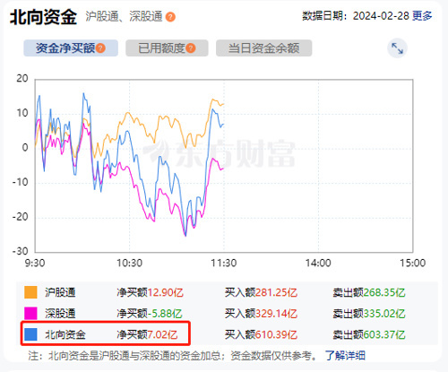 不过,北上资金仍在逆势净流入,上午净买额为7.02亿元。