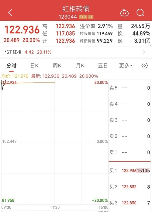 *ST红相和转债双双“20cm”涨停