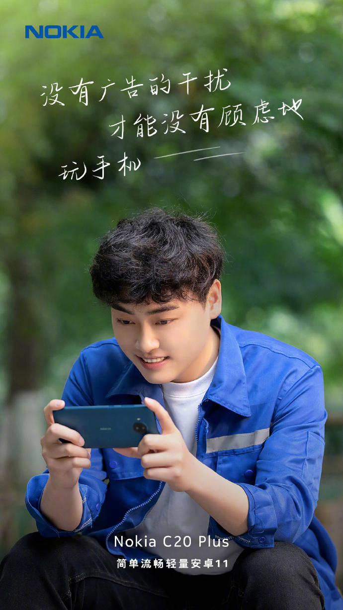 从官方放出的海报来看,Nokia C20 Plus 手机应该定位低端,后置双摄像头,采用塑料后壳。