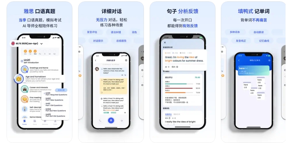 结合AI技术,它能对学习者的发音、流利度、完整性等进行多维度分析,生成详细的学习报告,帮助学习者明确自身优势与不足,有针对性地进行提升。