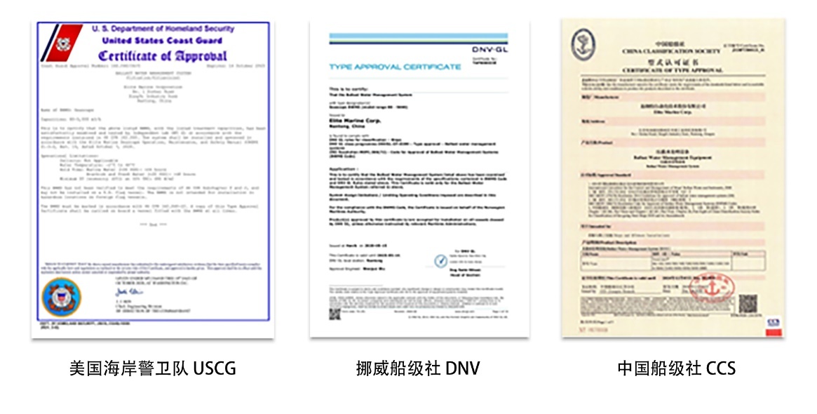 从英国、法国、意大利、俄罗斯、日本、美国船级社,到美国海岸警卫队(USCG),一份份认证意味着易俐特的压载水处理系统具备处理全球各大海域海水、净化全球海洋环境的实力,也意味着易俐特从装备的技术实力、生产工艺以及针对不同客户的整体解决方案和服务,都已站在了国际的一线梯队。