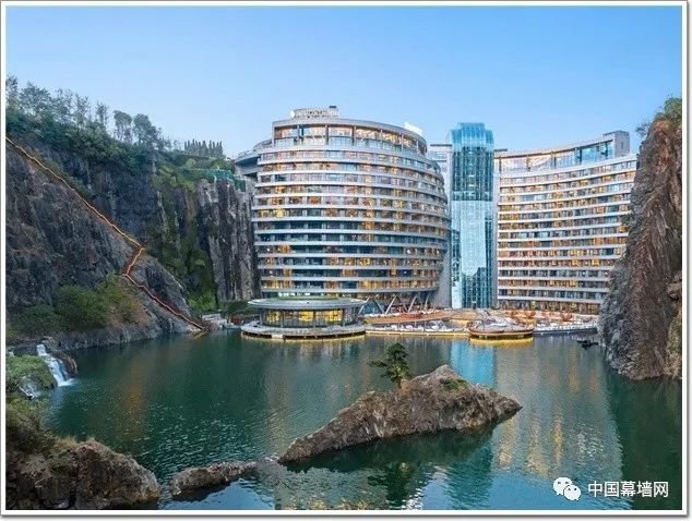 公开资料显示,佘山世茂洲际酒店(世茂深坑洲际酒店),由世茂集团投资建设,中建八局承建,其海拔为负88米,是世界首个建造在废石坑内的自然生态酒店。