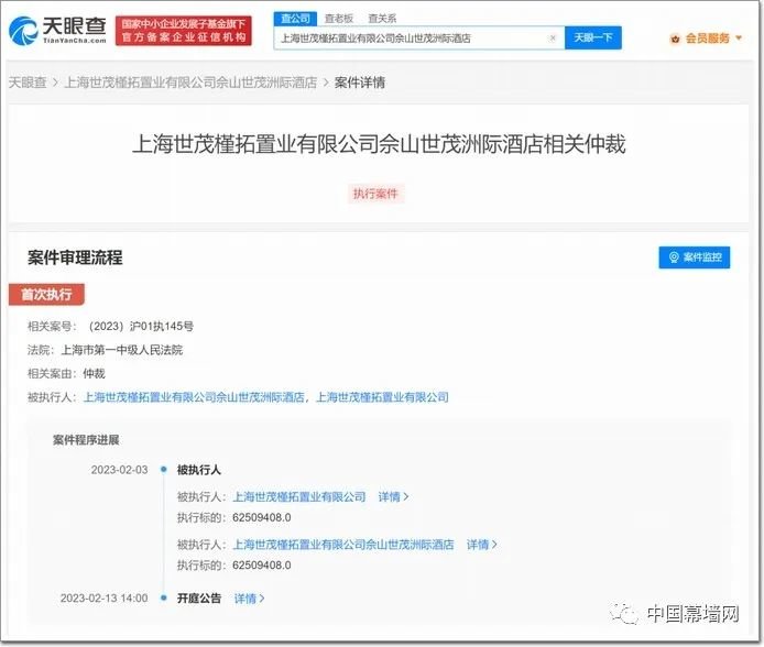 近日,从天眼查App了解到:上海世茂槿拓置业有限公司佘山世茂洲际酒店、上海世茂槿拓置业有限公司被强制执行6250万余元,执行法院为上海市第一中级人民法院。