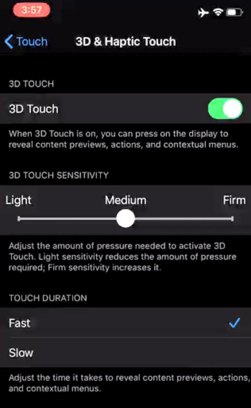 3D Touch 性能改进,且设置页面由 3D Touch 更名为 3D & Haptic Touch,支持设置触摸持续时间。
