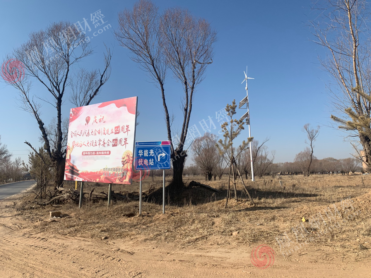 距离华能陕西靖边电力有限公司的100兆瓦光伏电站项目(简称: 华能陕北光伏项目)基地10公里处竖立一个“华能光伏电站”指示牌