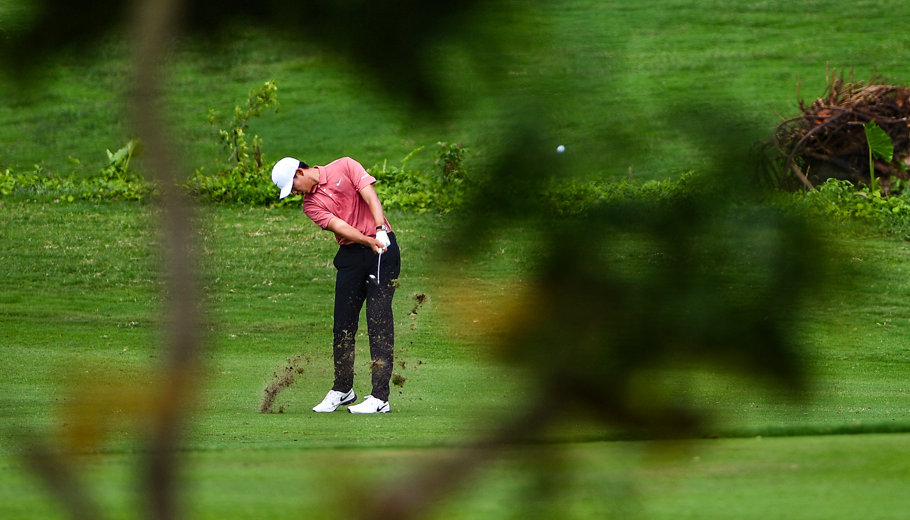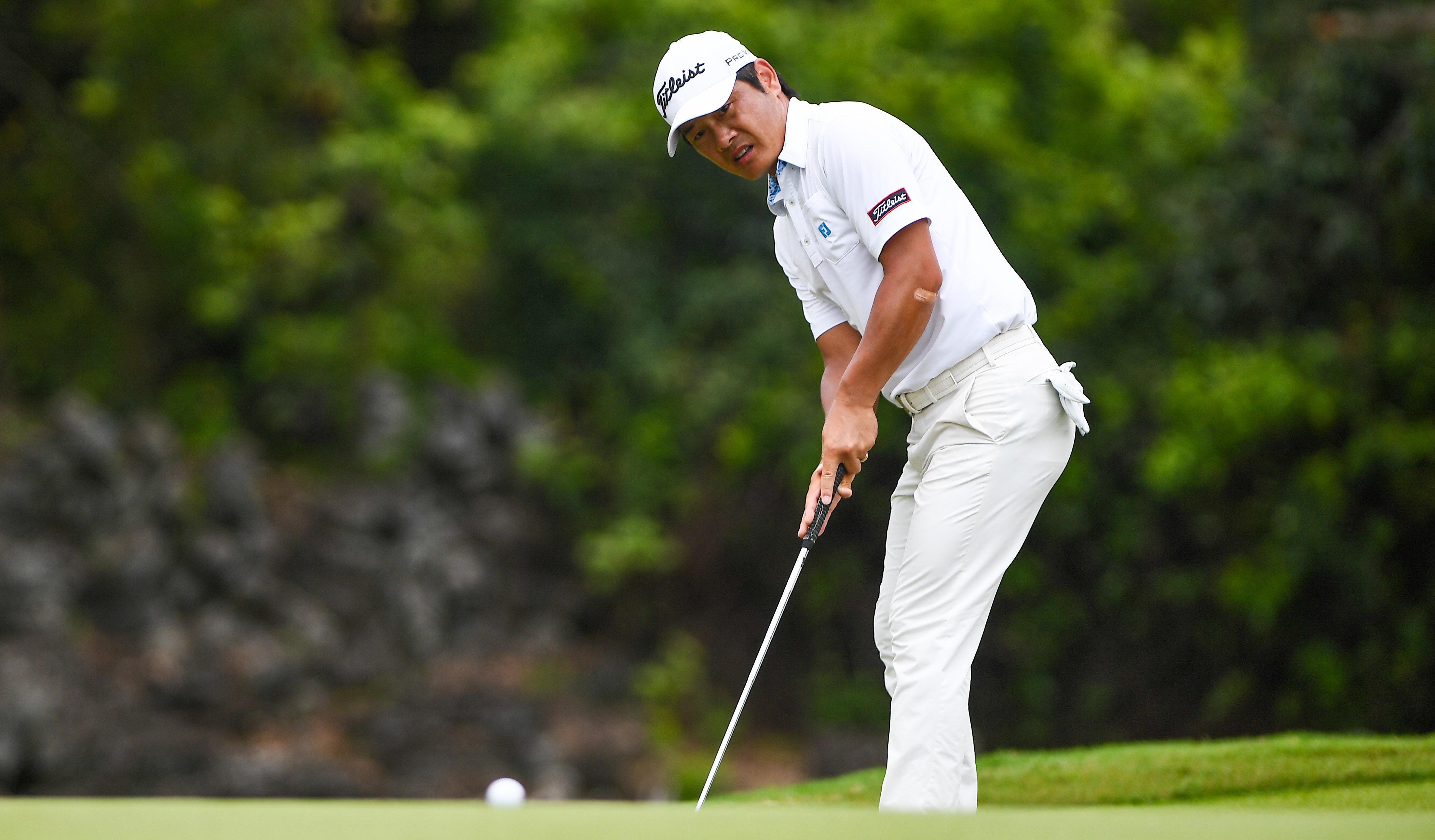 4月27日,中国选手肖博文在第四轮比赛中。最终,他以277杆、低于标准杆11杆的总成绩获得并列第六名。新华社记者 杨冠宇 摄