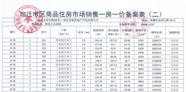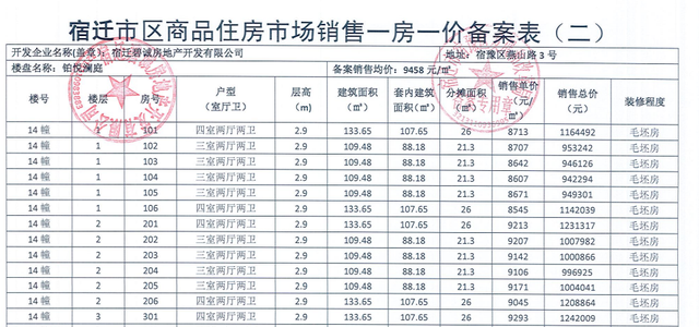 商品住房一房一价公布内容包括:楼盘名称、楼号、楼层、房号、户型、层高、建筑面积、套内建筑面积、分摊面积、销售单价、销售总价等详细信息。2020最新备案价公示。