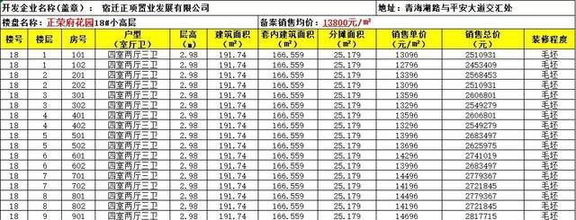 正荣府花园18#小高层 毛坯房 备案量共计22套房源,建筑面积约为191㎡,销售均价13800元/㎡。