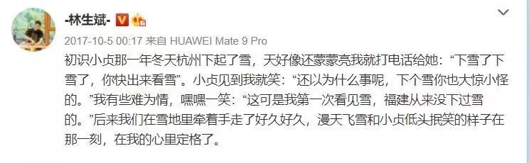今年清明时,林生斌与新欢的女儿即将出生,他在微博发表的悼念文字是这样写的: