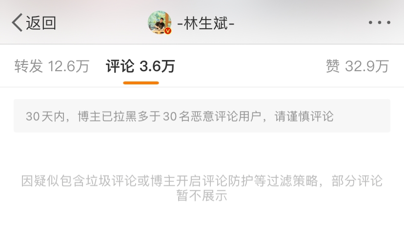 高达3.6万的评论量,铺天盖地的讨伐声,在这种情况下,林生斌选择关闭了评论区。