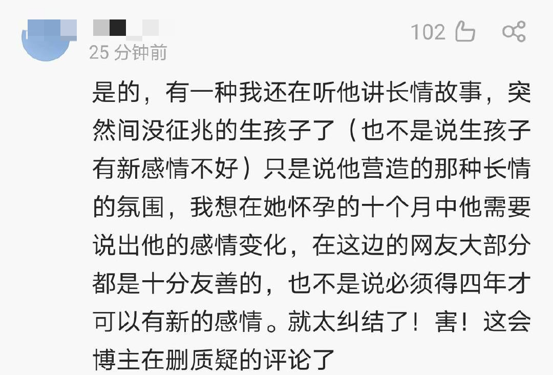 可是这么久了,大家都还沉醉在他讲述的深情故事中,结果毫无征兆,直接上来就说他有了新的孩子。